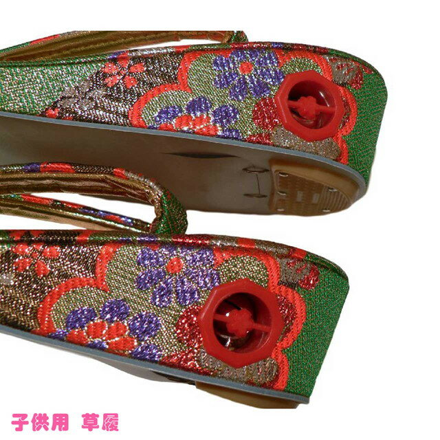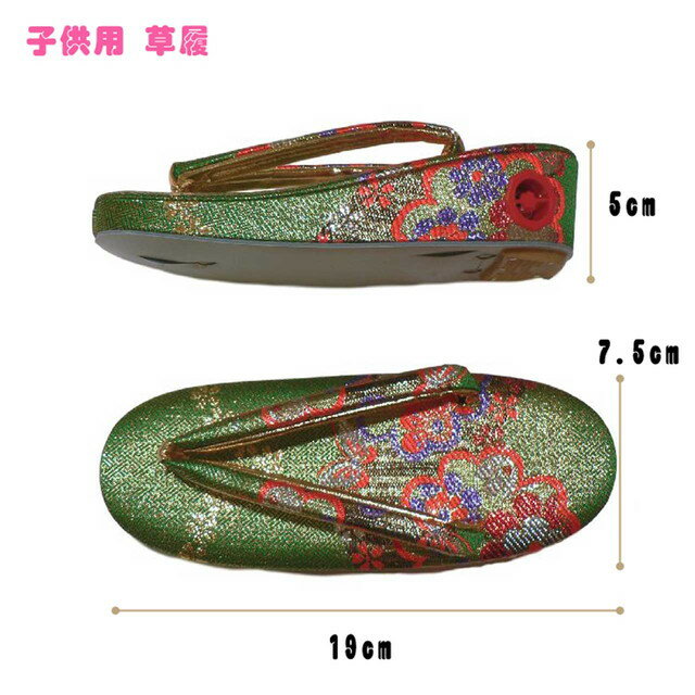 緑色からキラキラとかいま見える、金属糸が華やかな女児用草履です。