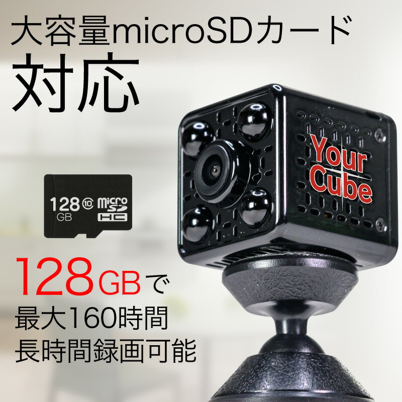 ■商品説明 超小型防犯カメラ Your Cube microSDカード最大128GB対応 長時間録画可能 500万画素センサー搭載 FullHD1080pで録画が可能 最大128GBで最大160時間の長時間録画が可能。