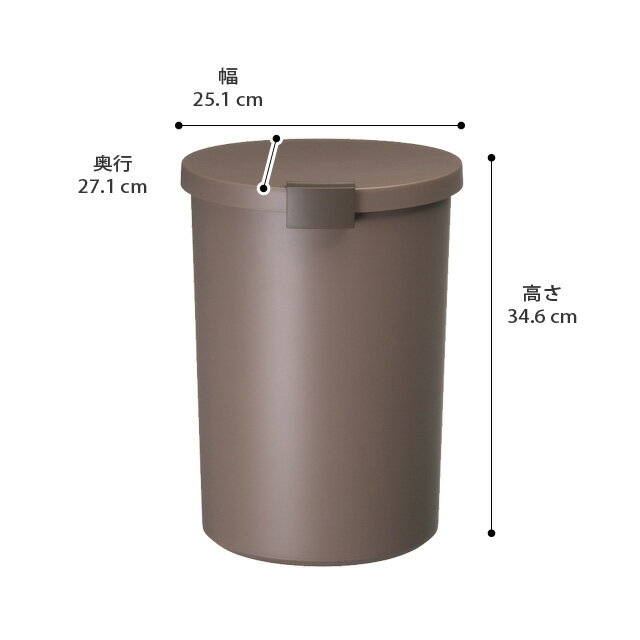 COLOR カラー SIZE サイズ サイズ 約 幅25.1cm × 奥行き27.1cm × 高さ34.6cm 重量 約 720g 容量 12.4L 対応ポリ袋 6×50cm以上、または20L以上 取っ手付きポリ袋Lサイズ(30×55cm)以上 材質 本体・フタ・ロック・袋止め/ポリプロピレン パッキン/シリコーンゴム ※本体に多少むらがありますが、不良品ではありません。