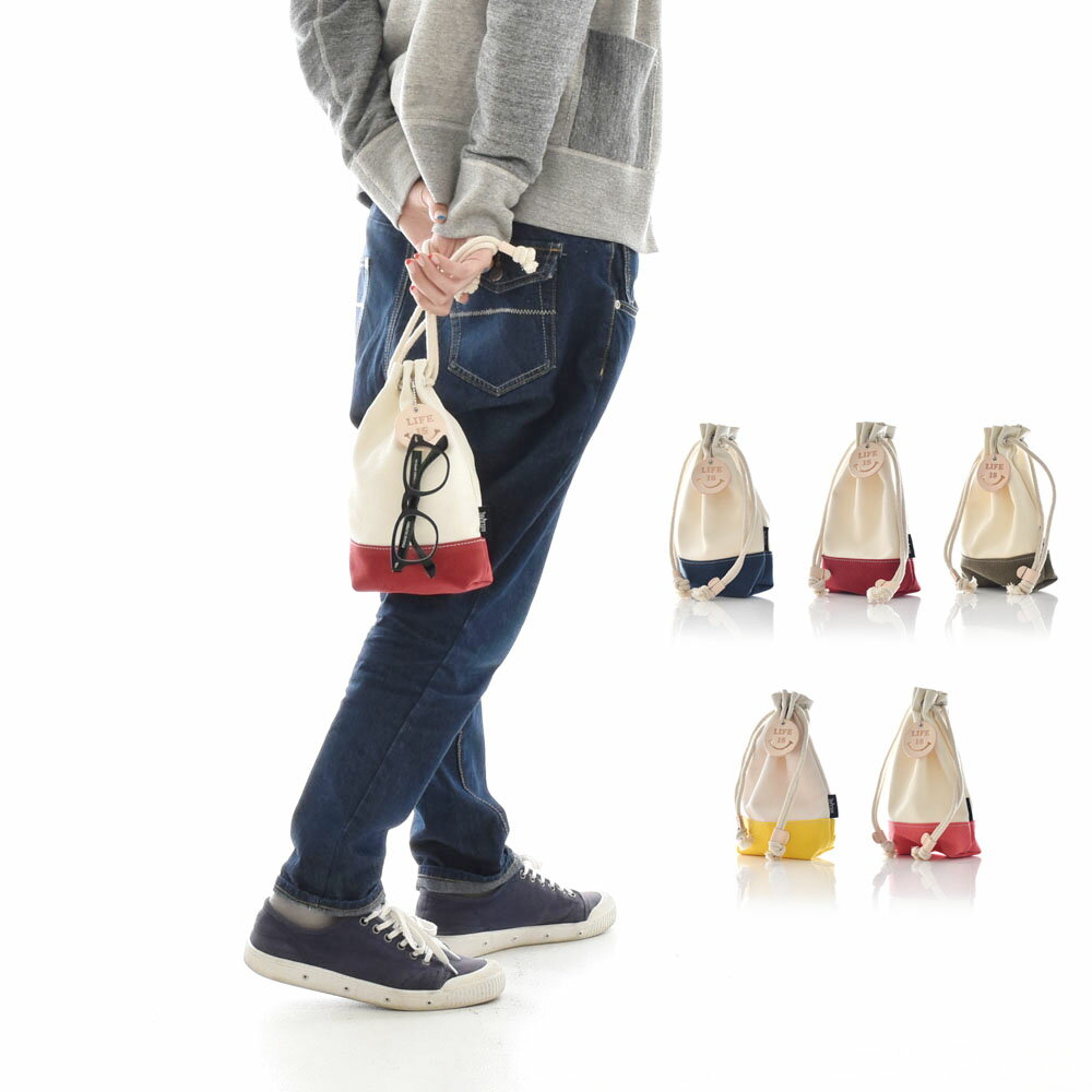 【11%OFFセール】ライフ イズ アート Life is ART Life is Smile ウォータープルーフキャンバスポーチ【スマイル スマイリー マーク キャンバス 2トーン 巾着 バッグ 小物入れ メンズ レディース バッグインバッグ おしゃれ】 新入学